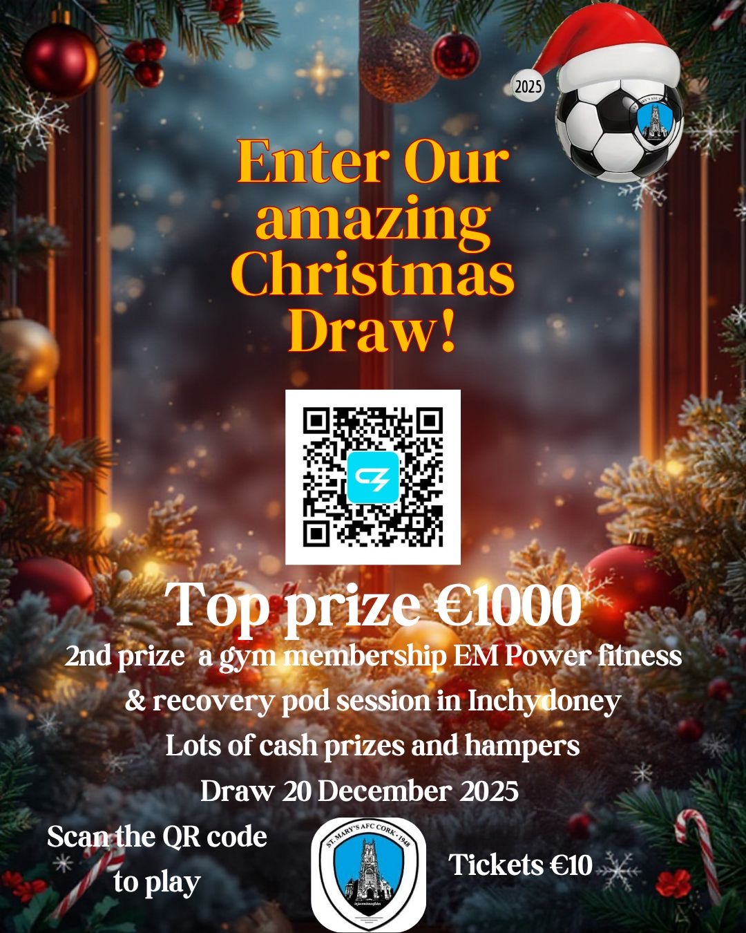Sold OutEntry to our Christmas Raffle with some great prizes such as:€1000 cash, 6 months Gym Membership and some great Xmas Hampers